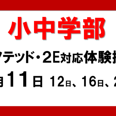 新型コロナ感染拡大のため、個別に実施しています。 進学・進級・不登校・発達の問題等でお悩みの方、是非ご連絡ください。 ギフテッド2E小中学部・高等部 / 大学部(生活訓練)ともに体験も可能です。