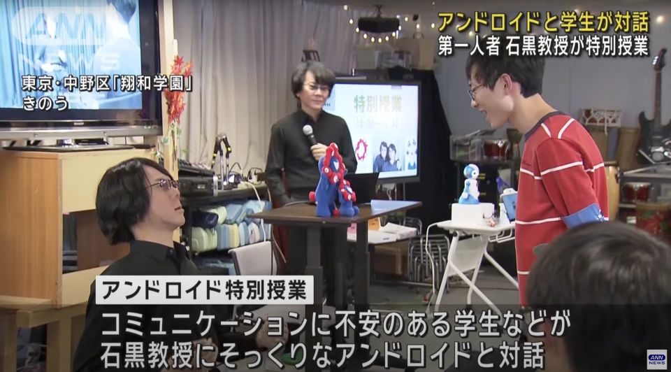 2024年12月7日には、「アンドロイドと学生が対話 第一人者の石黒教授が特別授業」(AN News https://youtu.be/dzwCCDzjguU?si=_lTOoZmp_G6nTedB)が翔和学園で行われ、自らのアバターと生徒との対話による授業を公開しました。