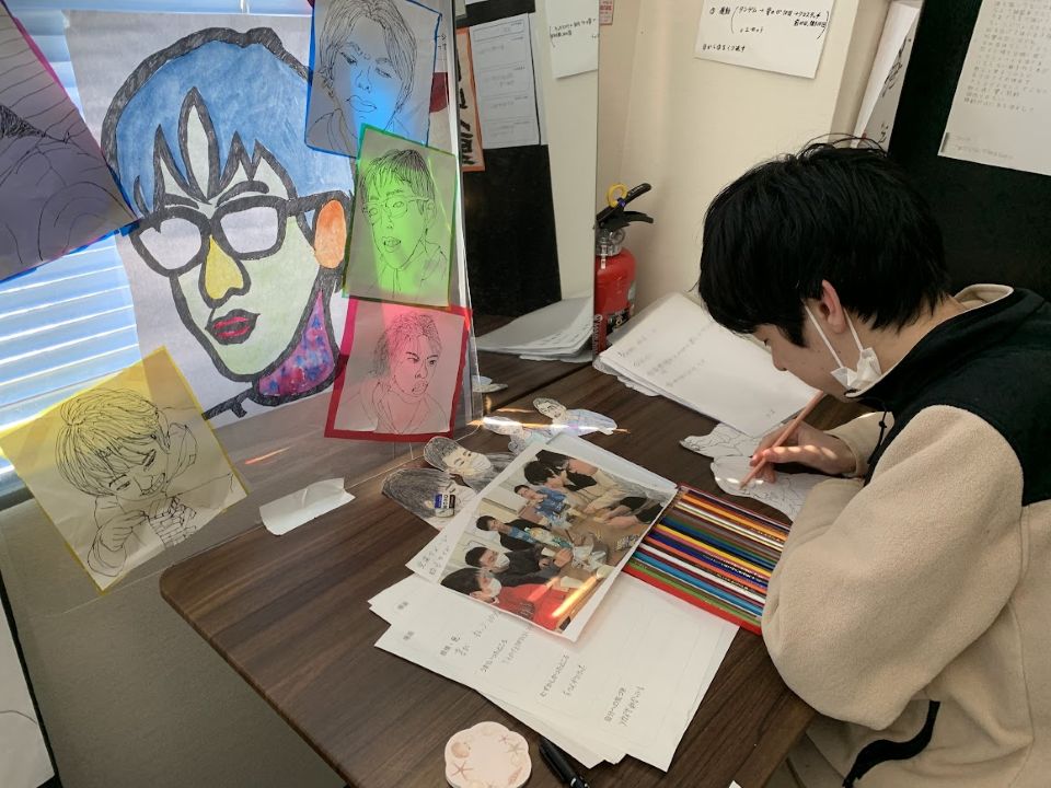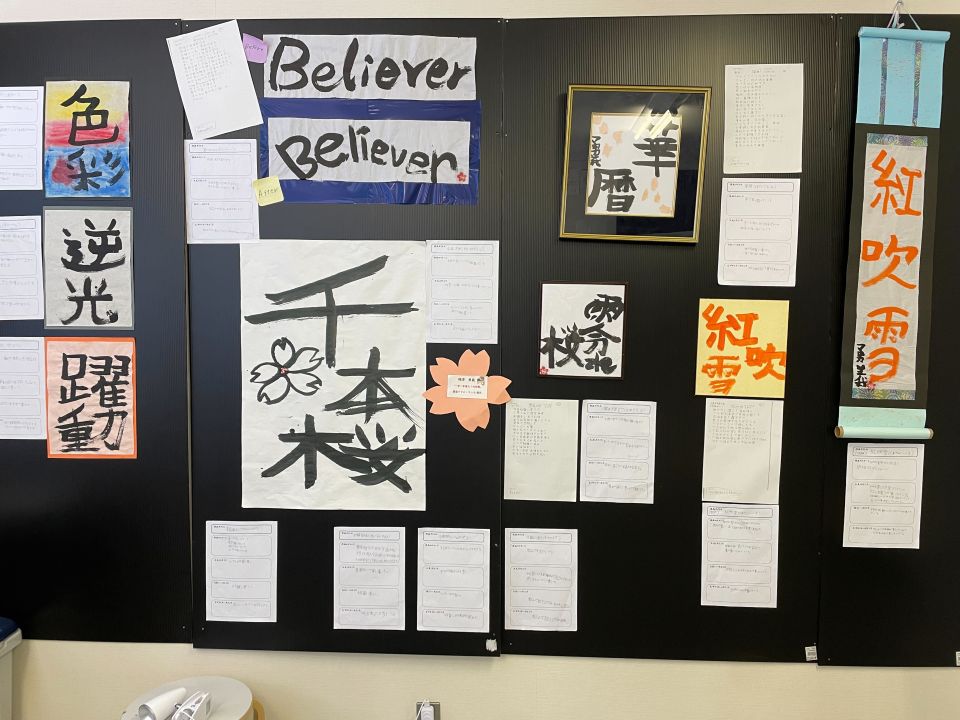漢字や書くことに苦手意識のあったJ君は、彩能タイムの時間に、好きな歌の歌詞を書き写す活動に挑戦。3カ月で30曲。次は5カ月で70曲。計100曲の書き写しを達成。シャーペンから筆に持ち替えて書道にも挑戦。歌詞や周りの人から得たイメージを漢字で表現し最後はお客さんの前でも堂々のパフォーマンスを行った。