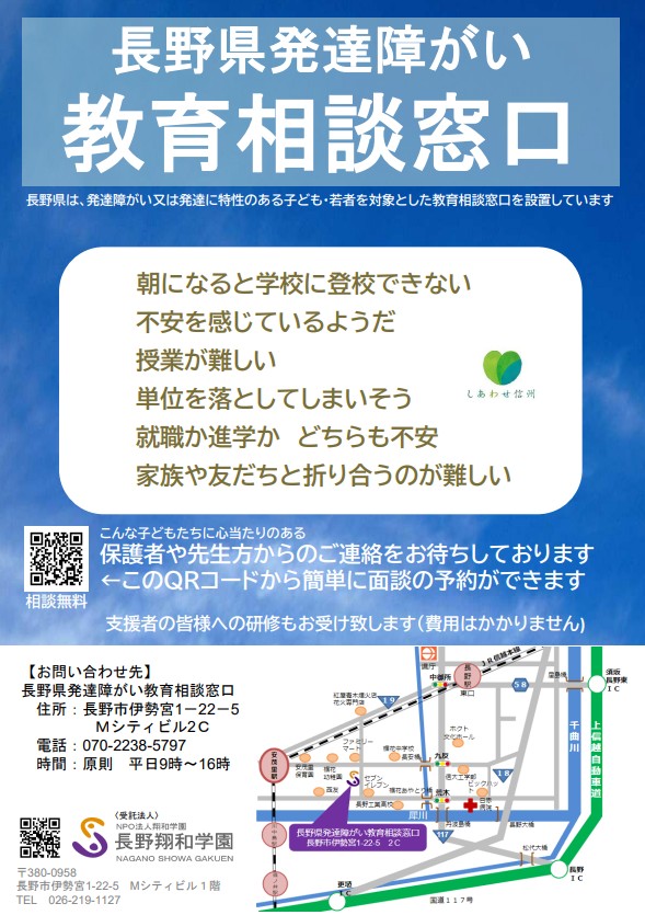 長野県発達障がい教育相談窓口(長野県の委託事業)