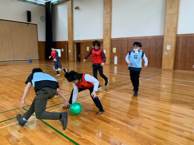 小田切キャンパスのすぐ近くには、地域の広いグラウンドや体育館があるのでそういった地元の資源を活用して、週1回様々な運動を行っています。